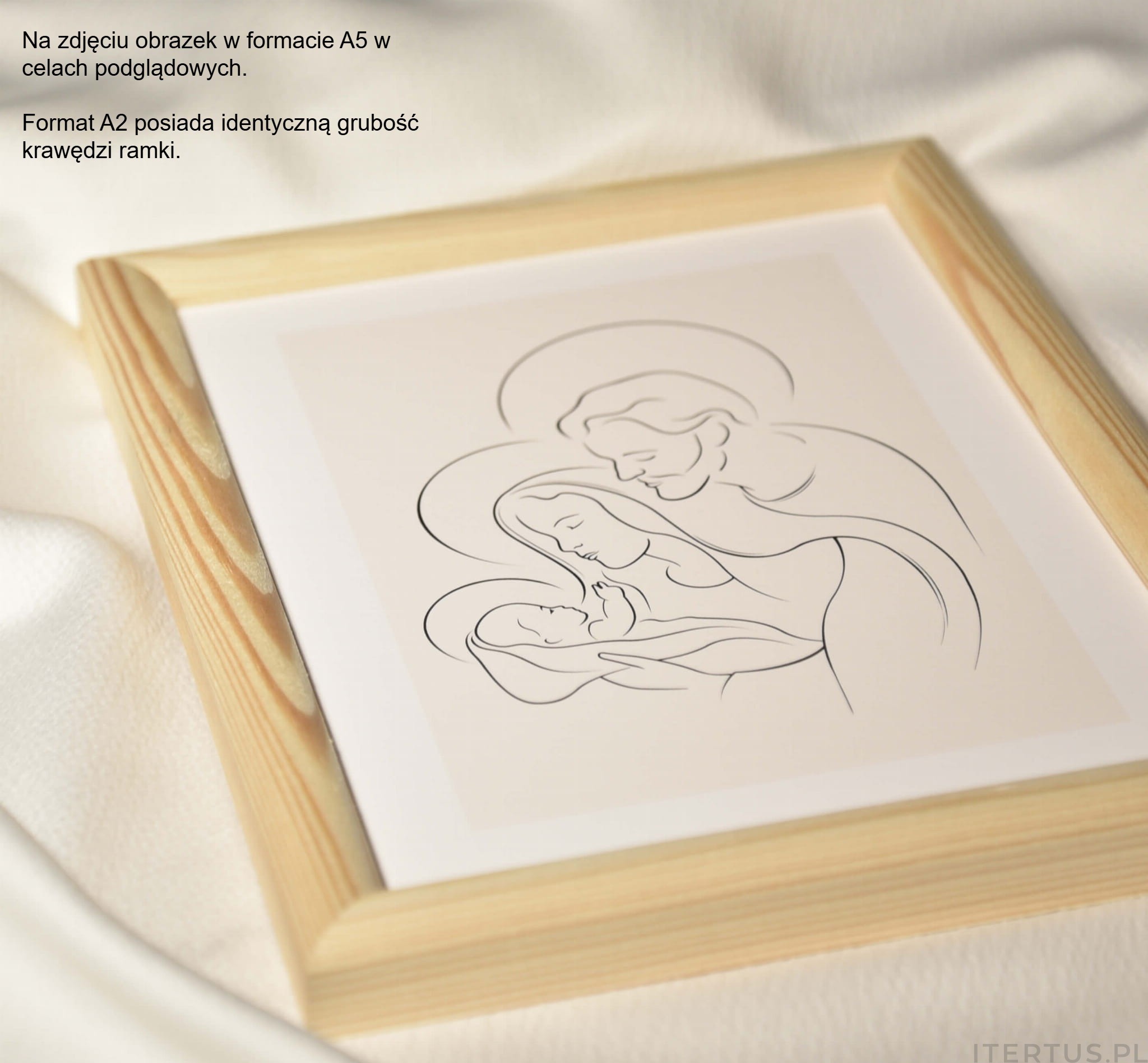 Duży obraz Świętej Rodziny na prezent chrzcielny - Format A2 w sosnowej ramce