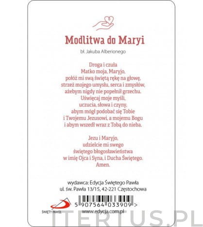 Dopełnieniem zestawu są drobiazgi, które możesz mieć zawsze przy sobie. Poręczna karta o wymiarach 5,40 x 8,50 cm z wizerunkiem Maryi i tekstem bł. Jakuba Alberionego idealnie pasuje do portfela czy etui na telefon. Z kolei turkusowa bransoletka z kamienia, wykonana z elementów o średnicy 8 mm na elastycznym sznurku, subtelnie podkreśli Twój styl i będzie dyskretnym symbolem wiary.