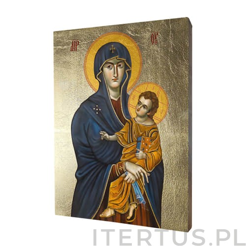 - Ikona wykonana na desce lipowej, podwójnie gruntowanej, oraz uszlachetnionej płatkami pozłoty