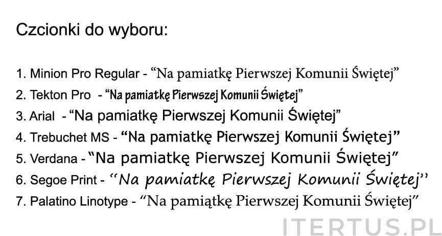 - Wybierając ikonę z opcją dedykacji (+15 zł) - wybierz wzór dedykacji i czcionki do wyboru (widoczne w galerii produktu), oraz wpisz w polu tekst dedykacji (całość, która ma znaleźć się na plakietce)