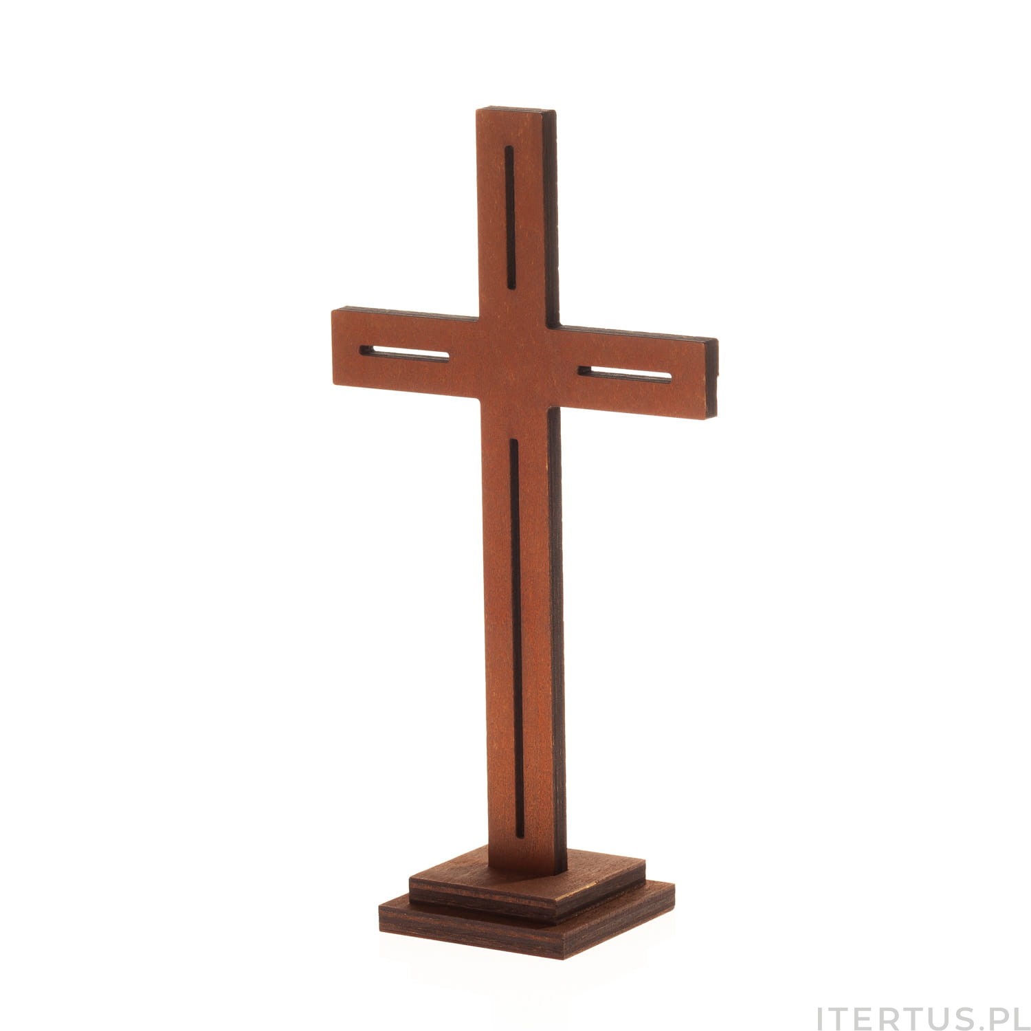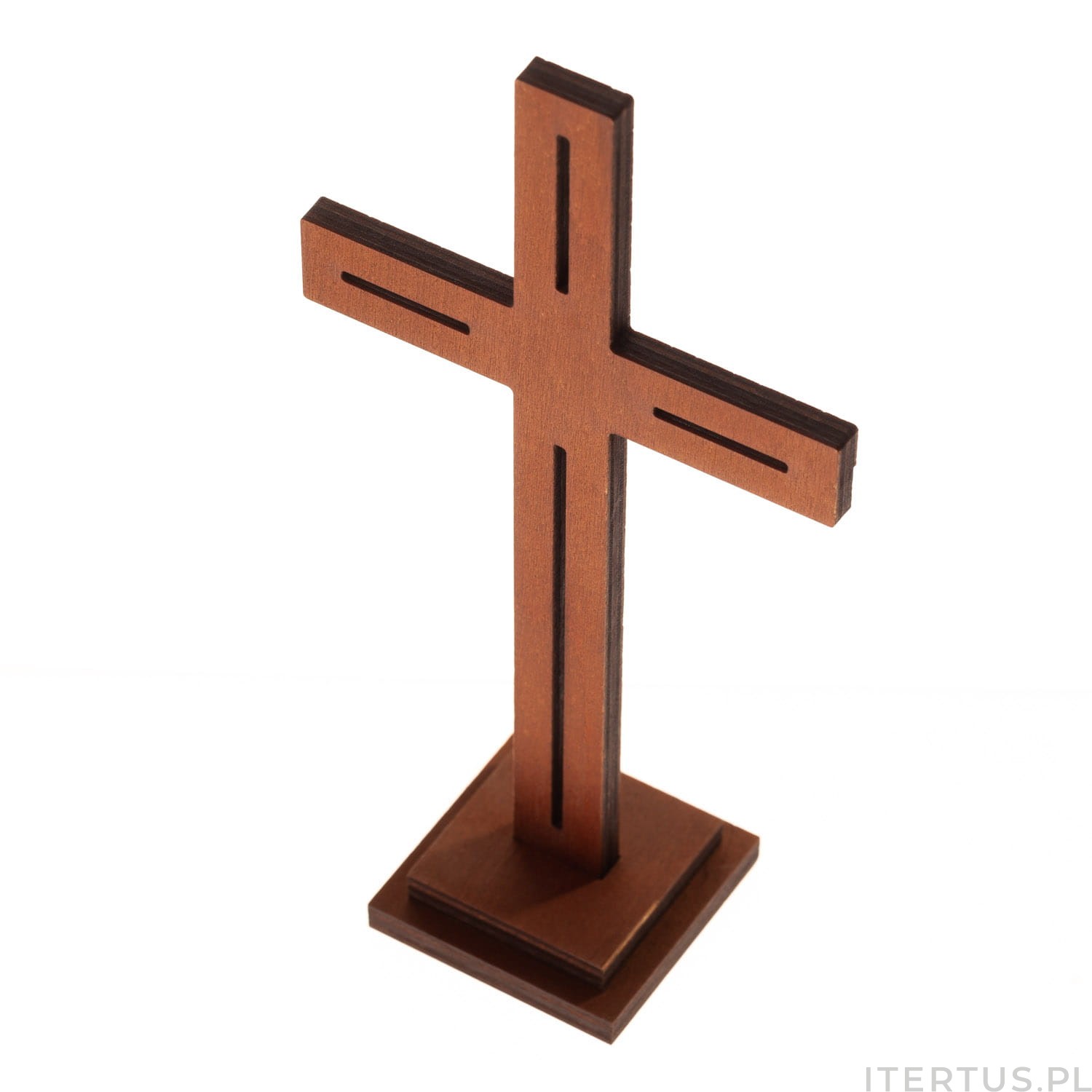 Krzyż stojący z olchowej sklejki to główny symbol chrześcijaństwa, dostępny w kolorze ciemnego drewna. Jego wymiary 18 cm wysokości, 8 cm szerokości i 1,2 cm grubości sprawiają, że idealnie wpasuje się na biurko, półkę czy stół, dodając wyjątkowego charakteru. To doskonały wybór dla osób ceniących sobie zarówno estetykę, jak i duchowe wartości.