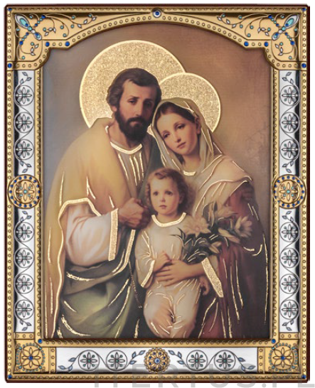 Ikona Świętej Rodziny za szkłem w srebrnej ramie złoconej | 14 × 17 cm – Cuore