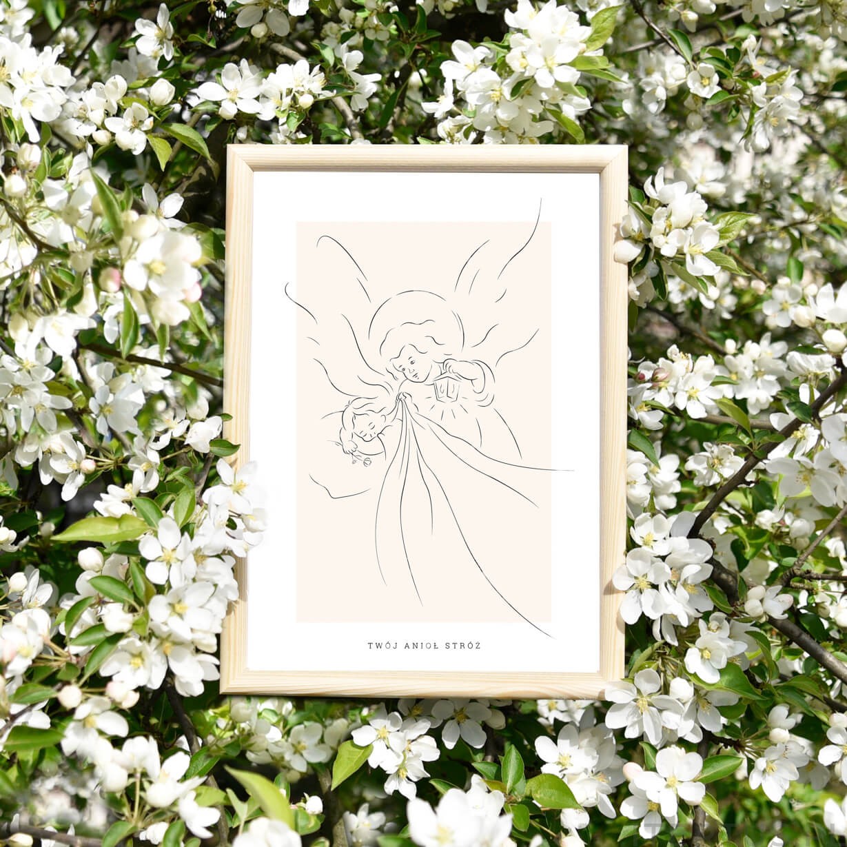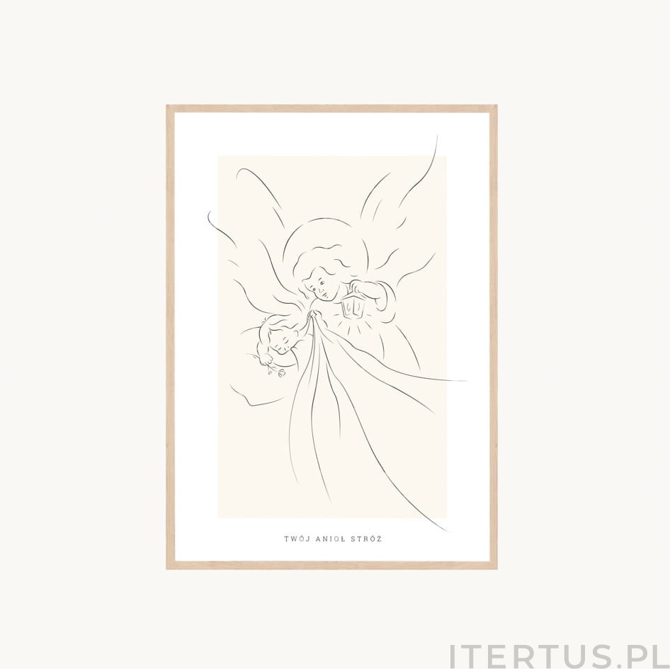 Projektując ten obrazek, postawiliśmy na spójność i naturalność. Delikatna, liniowa ilustracja Anioła Stróża na subtelnym, beżowym tle nie przytłacza dziecięcego pokoju, lecz tworzy w nim strefę łagodności. To rozwiązanie idealne dla osób, które chcą wspierać rodziców w budowaniu przyjaznej, harmonijnej przestrzeni od najmłodszych lat.