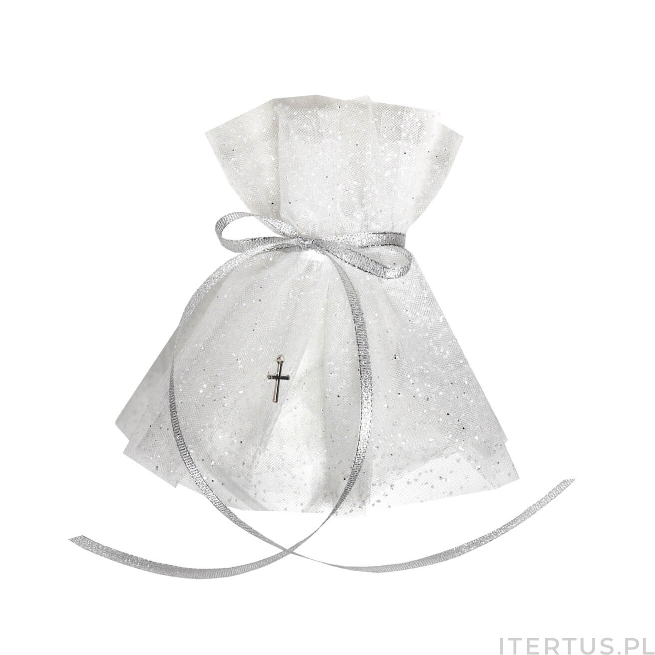 Profitka na Świecę do Chrztu - Okapnik Tiulowy z brokatem z Krzyżykiem - handmade