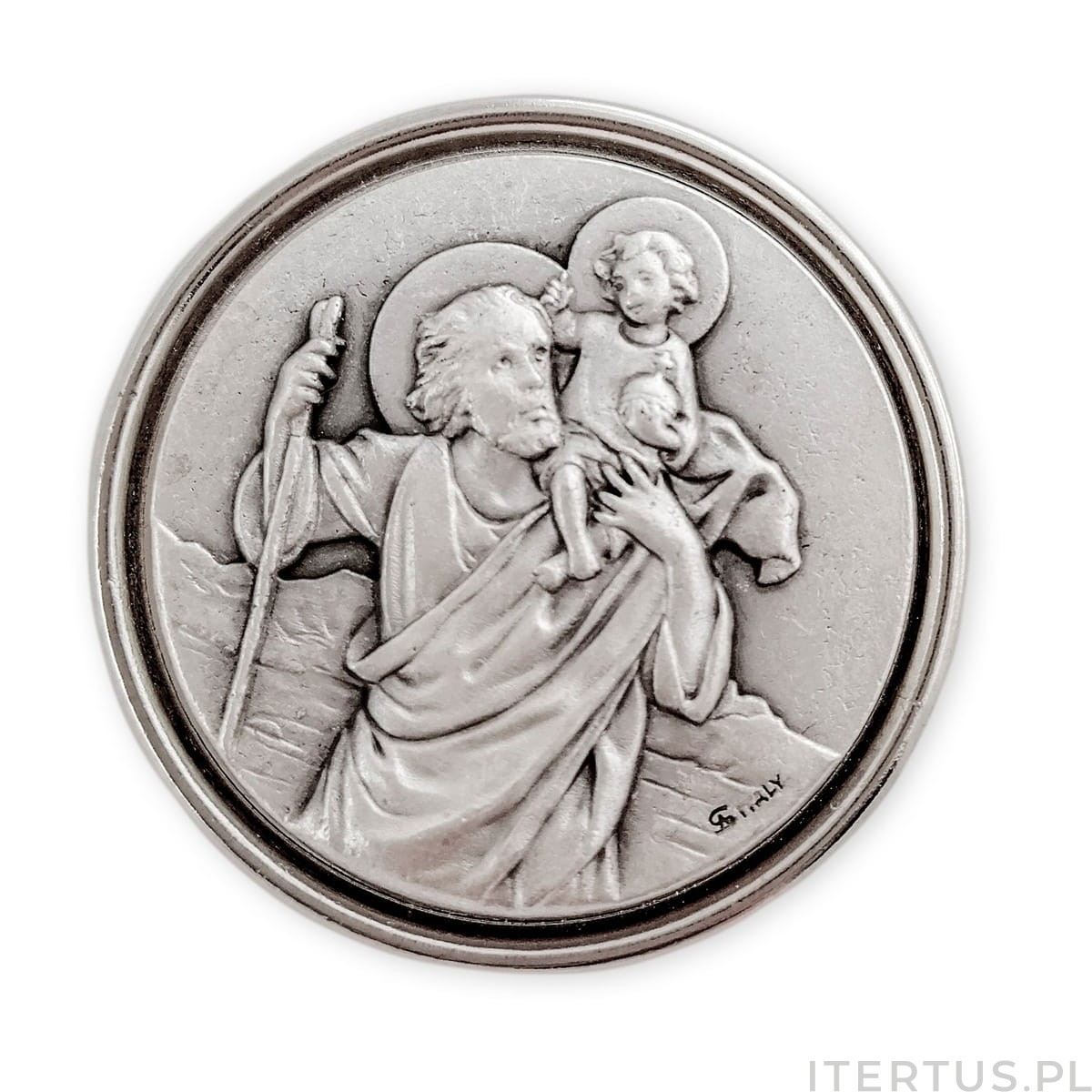 Przylepiec z wizerunkiem Świętego Krzysztofa.