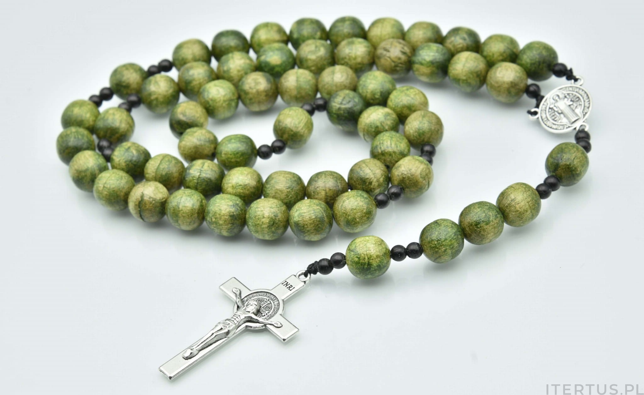 Różaniec drewniany, zielony - ręcznie robiony - 12 mm