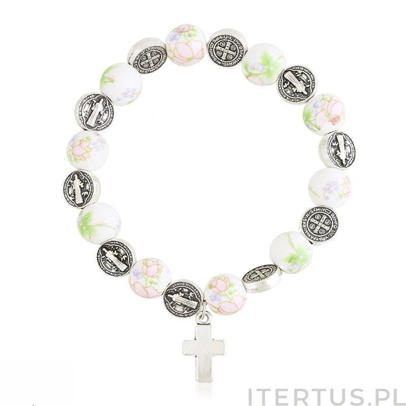 Różaniec na rękę damski - bransoletka św. Benedykta - róża na koralikach
