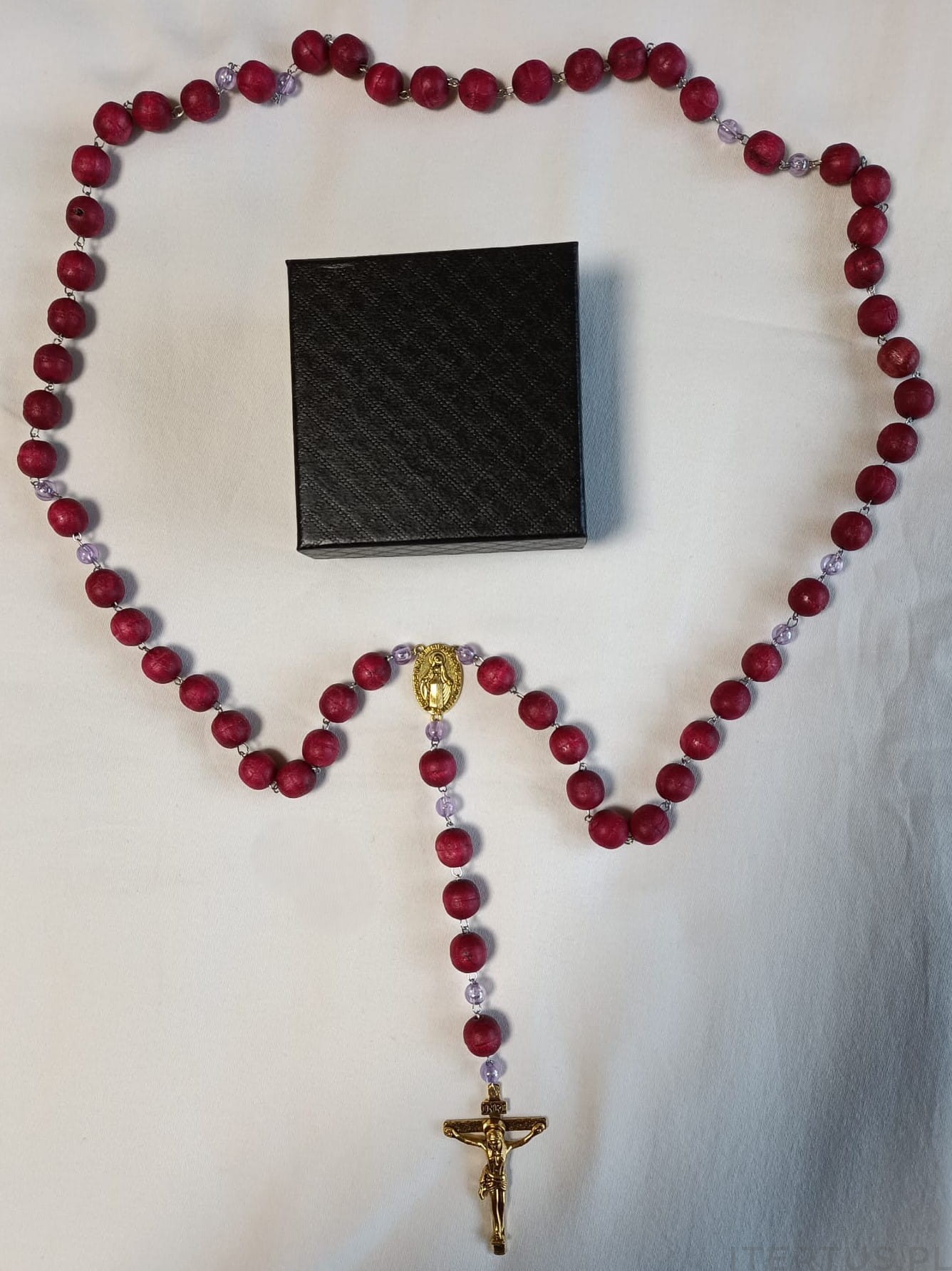Przedstawiamy wyjątkowy różaniec, który łączy w sobie elegancję i duchowość. Ręcznie wykonany z polskiego drewna, ten różaniec charakteryzuje się koralikami o średnicy 10 mm w pięknym, ciemnoróżowym odcieniu. Każdy element został starannie dobrany, aby stworzyć harmonijną całość, a złoty krzyż z pasyjką dodaje mu wyjątkowego blasku. Dodatkowo, medalik Matki Bożej Niepokalanej stanowi piękny akcent, który podkreśla charakter tego produktu.