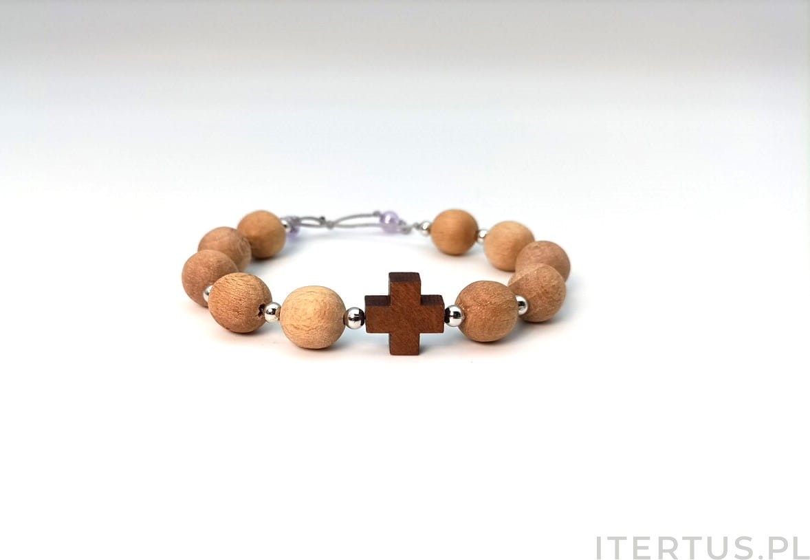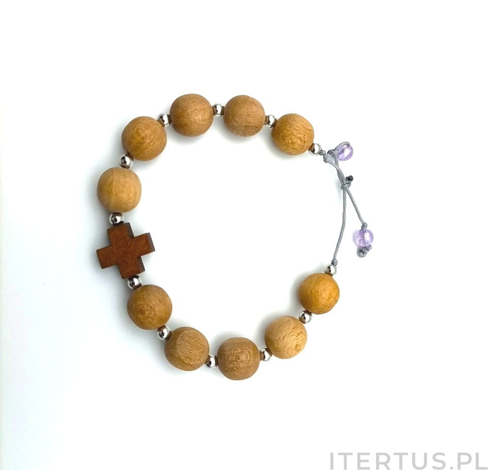 Informacje dodatkowe Różaniec na rękę damski drewniany, ręcznie robiony