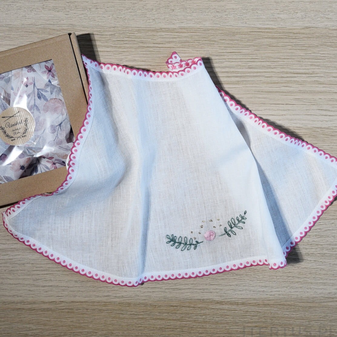 Szatka do Chrztu dla Dziewczynki Lniana Boho Haft Różowy Handmade - unikat