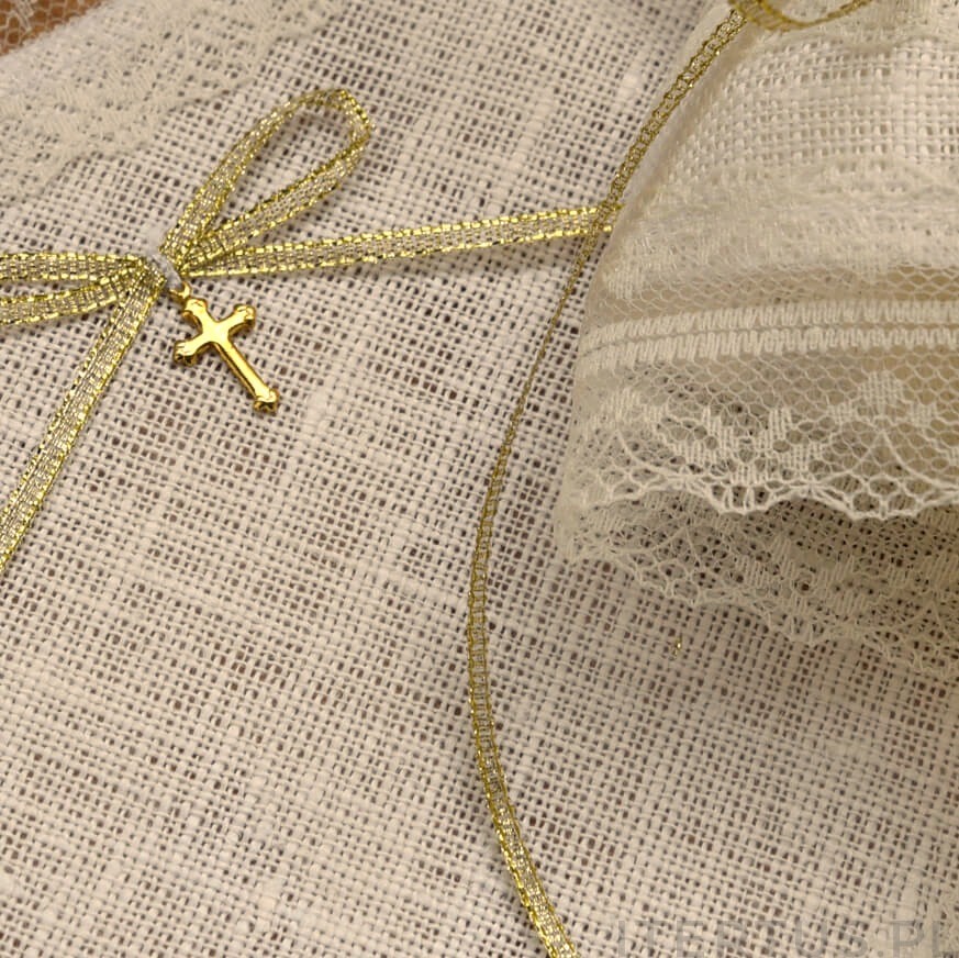 Ekskluzywny komplet chrzcielny - Szatka i Profitka do świecy - ze Złotym Krzyżykiem Handmade - unikat